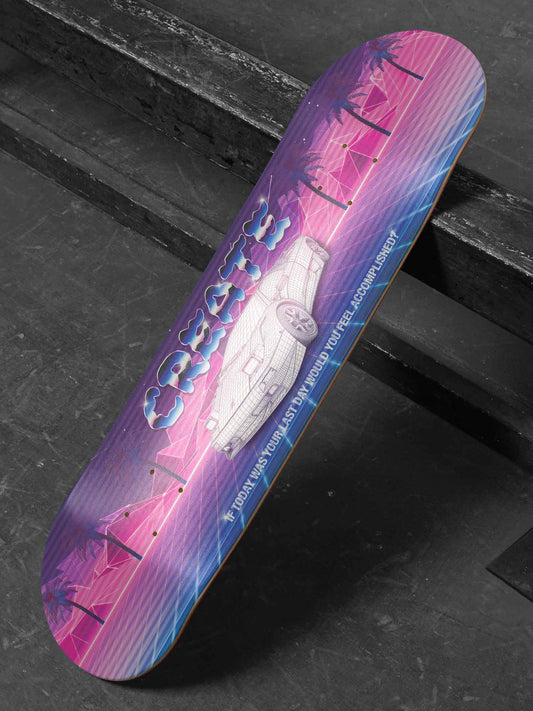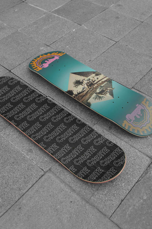 The Mushroom skateboard feeatures a trippy holographic graphic that will take you on a trip...